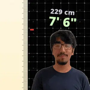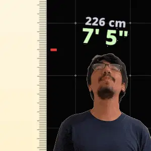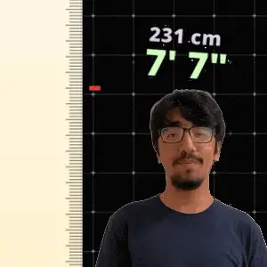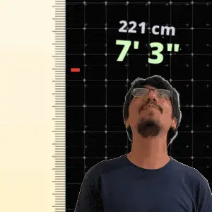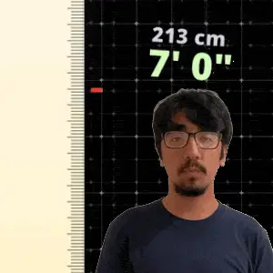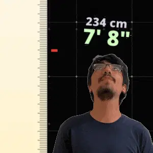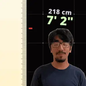 a man stands in front of a ruler that says 216 cm