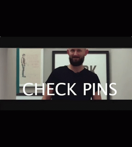 Matthias walks down stairs in a black shirt, with "CHECK PINS" displayed prominently on screen.