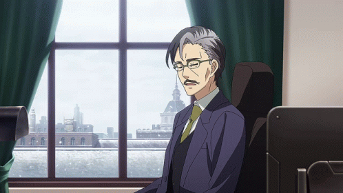 Ernst Zimmerman from 86Anime relaxes in his office chair, stretching his arms behind his head with a smile.