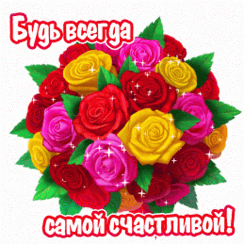 Vibrant bouquet of colorful roses with Russian text wishing 'Happy March 8th' and 'Thank you'.