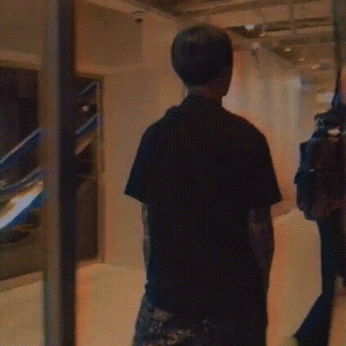 Genki Takebuchi from 8psb walking down a hallway with a glass door.