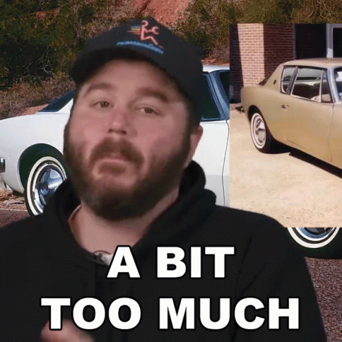 James Pumphrey, wearing a hat, discusses 'A Bit Too Much' with classic cars in the background.