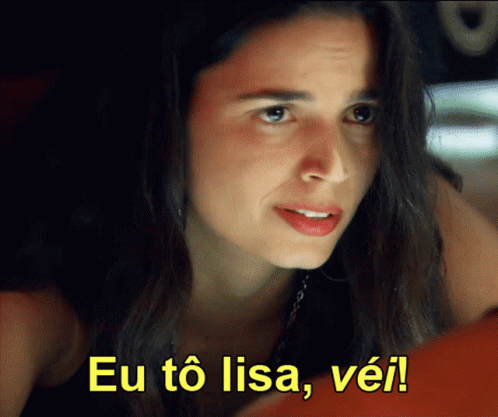 Emanuelle Araujo as Manu in 'A Favorita' novela, exclaiming 'Eu tô lisa, véi!' (I'm broke, man!).
