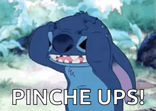 Animated Stitch character from Lilo & Stitch reacting angrily with the text "PINCHE UPS!" displayed.