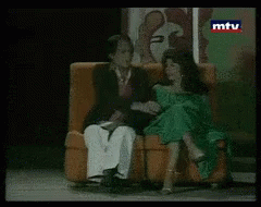 Adel Emam and a woman perform a hilarious scene from the Egyptian play 'Shahid Ma Shafsh Haga'.