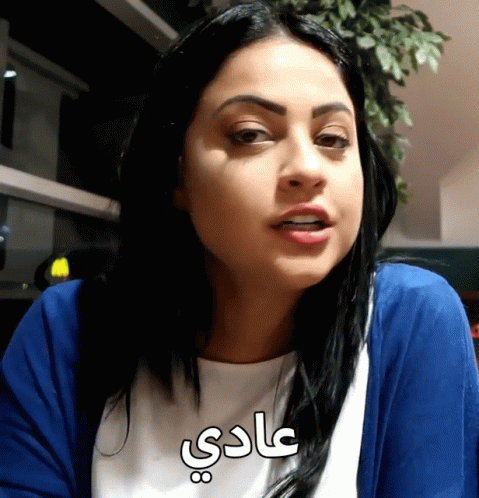 A woman with 'Normal' (عادي) on her face, wearing a blue cardigan. Features Yaya, Sahar, and Khalil from The Ys Family.