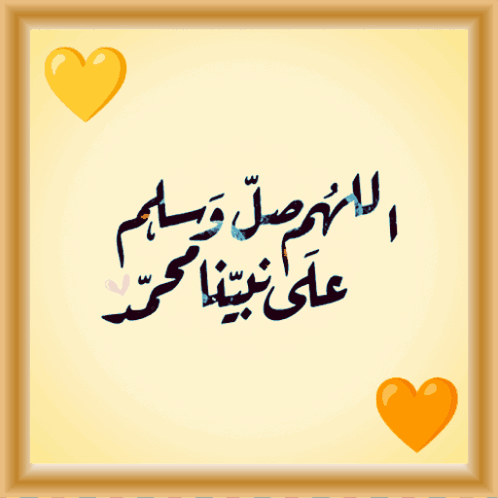 Animated Islamic phrases for evening remembrance, featuring 'Oh Allah, send prayers and peace upon our Prophet Muhammad' with hearts.