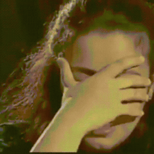 Egyptian actress Abla Kamel covers her face, then reveals a sad and emotional expression.