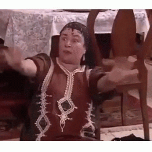 Abla Kamel, an Egyptian actress, is seen expressing strong emotions with expressive hand gestures.