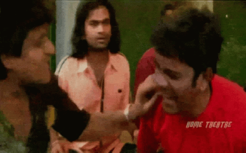 Actors Aadi and Ali in a hilarious Telugu comedy scene, with Ali playfully hitting Aadi, who reacts dramatically.