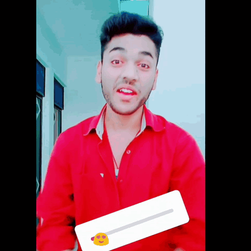 Aadi Haye and Adarsh in a red shirt making expressive faces and gestures, with a fun emoji overlay.