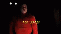 Mohamed Heneidi as Mohiy from "Foul Essein El Azim" showing off his muscles, with Arabic captions.