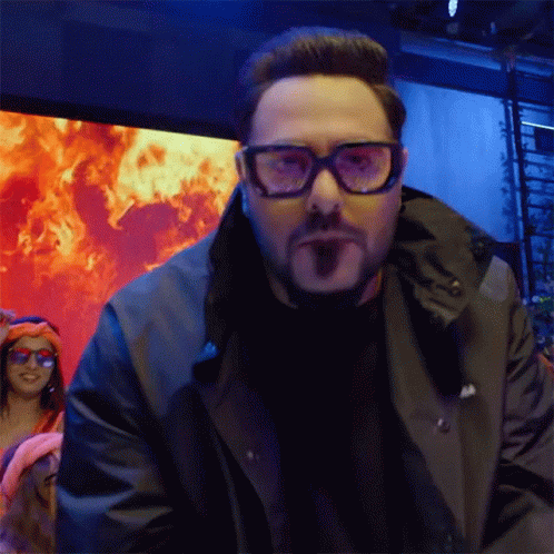 Badshah performs 'आजाना' from Ginny Weds Sunny, wearing glasses and a black jacket against a fiery screen.