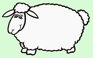 A black and white drawing of a smiling sheep, symbolizing Eid al-Adha and conveying greetings.
