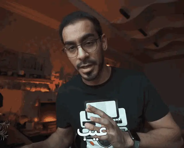 Swimy, looking angry, points at himself with the Arabic word 'عيييب' (Shame on you) displayed on screen.