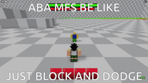 A character in the ABA game gets hit with massive damage, highlighting the ironic 'just block and dodge' advice.