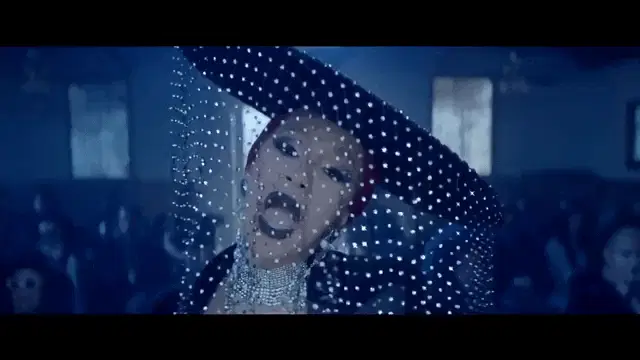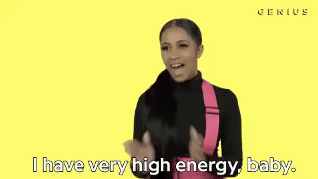 Cardi B in a white Chanel sweater, showing a surprised reaction with an open mouth and gesturing hand.