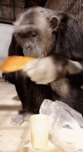 Abbybarb Monkey skillfully dips a piece of bread into a cup before enjoying its meal.