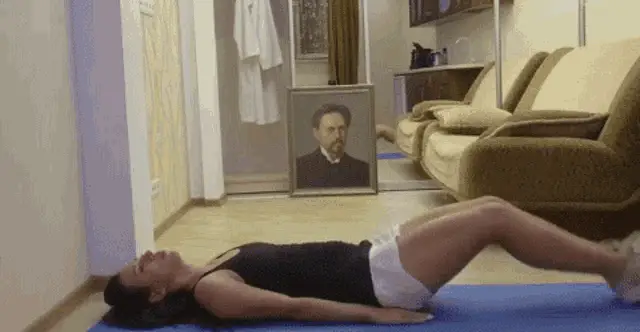 Woman demonstrates supra abdominal crunches on the floor, a core exercise from Treino Mestre.