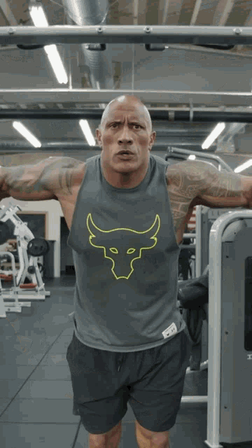 Dwayne 'The Rock' Johnson performs an intense cable fly workout, sweating profusely in the gym.