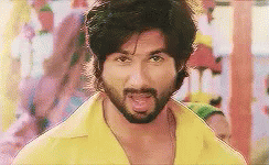 Shahid Kapoor in a playful moment from the Bollywood film R... Rajkumar, making a funny face.