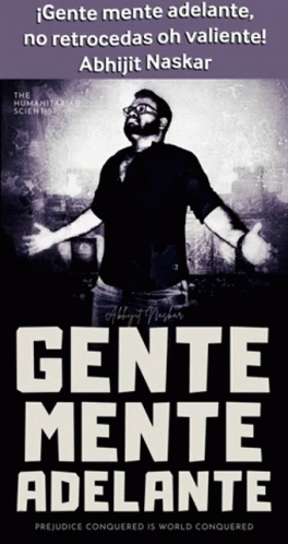 Abhijit Naskar's book 'Gente Mente Adelante' with a powerful message on human progress and bravery.
