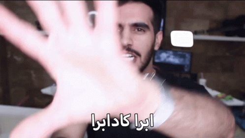 Abo Reja (Abdulaziz) performs a magic trick with his hands, saying 'Abra Kadabra' in a funny moment.