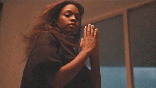 Abrapray Abrafruit meditating with hands clasped in prayer, her hair flowing around her in a serene setting.