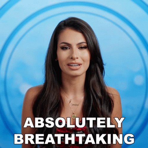 Suzanna declares 'Absolutely Breathtaking' against a blue background, from The Real Love Boat.