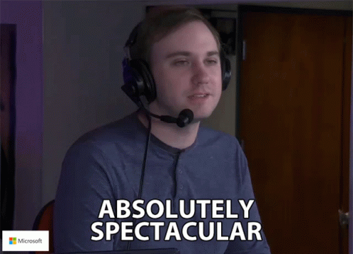 Michael Fisher, wearing headphones and a microphone, enthusiastically says 'Absolutely Spectacular'.