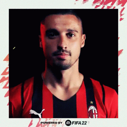 Rade Krunic, midfielder for AC Milan, featured in a promotional graphic for FIFA 22.