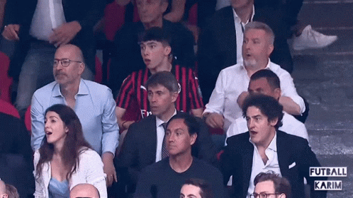 AC Milan management, including Gazidis, Massara, and Maldini, react with excitement at a football match.
