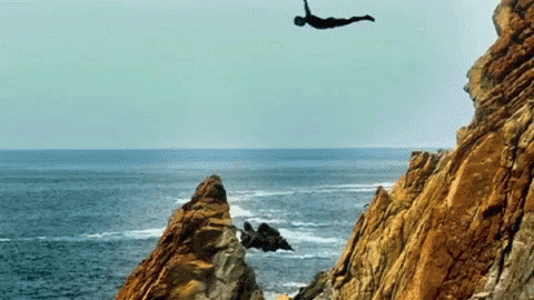 A thrilling cliff dive into the ocean off the rocky coast of Acapulco, Guerrero, Mexico.