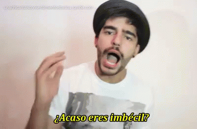 A man in a hat and t-shirt makes an expressive face, asking "¿Acaso eres imbécil?"