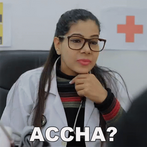 Sanjhalika Shokeen, a doctor, asks "Accha?" with a questioning expression in a medical setting.