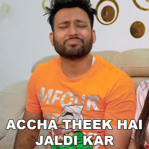 Pankaj Sharma expresses impatience with 'Accha Theek Hai Jaldi Kar' while wearing an orange shirt.