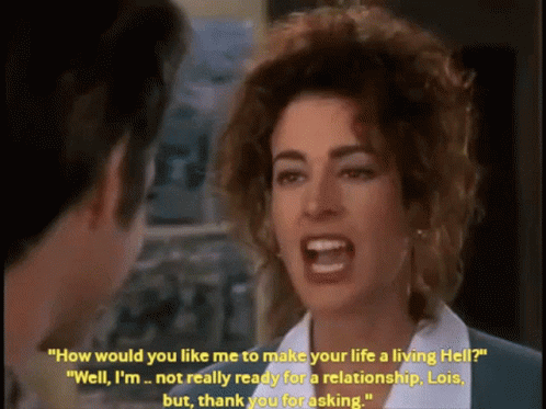 Ace Ventura (Jim Carrey) humorously declines a relationship offer from Lois in a classic movie scene.