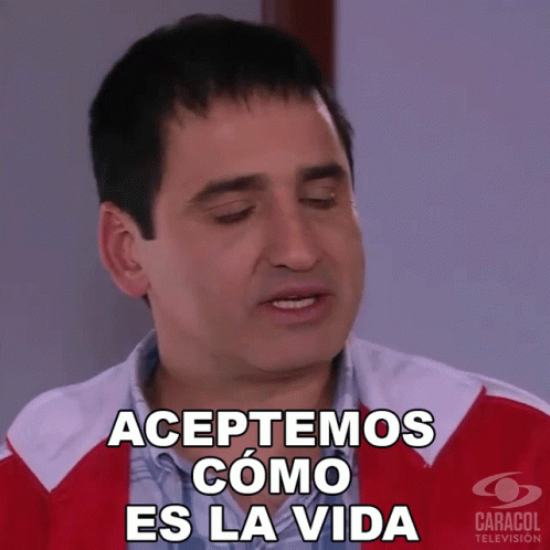 Oscar Leal, also featuring Robinson Diaz, speaks the phrase 'Aceptemos Como Es La Vida' from Caracol Television.