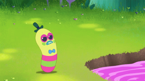 Mr. Dinkles from Trolls: The Beat Goes On sneezes loudly, with green liquid comically spraying from his mouth.