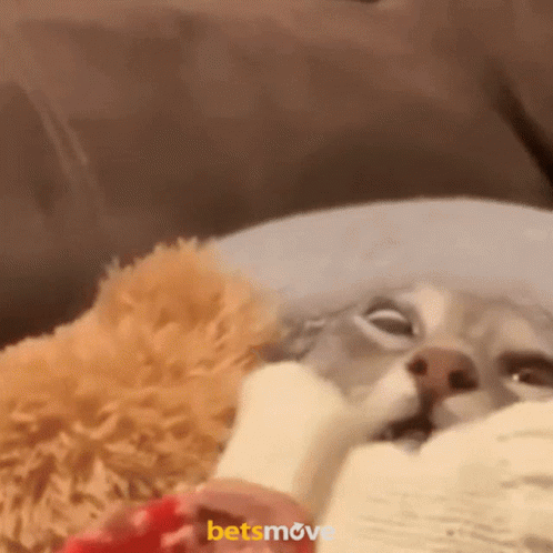 A hungry cat with wide eyes stares intently at a red spoon filled with food, eagerly awaiting a bite.