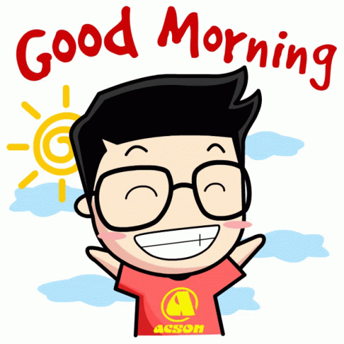 Acson Man, a cheerful cartoon character with glasses, greets with a bright 'Good Morning' and a wide smile.
