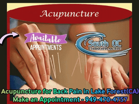 Acupuncture services for back pain in Lake Forest, CA, offered by South OC Chiropractic.