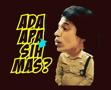 Animated meme featuring a caricatured man, likely from Warkop DKI, asking 'Ada Apa Sih Mas?' with animated text.