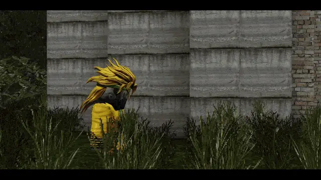 A chicken, dressed in a shirt, aims a rifle from behind a rock, then recoils from the shot.