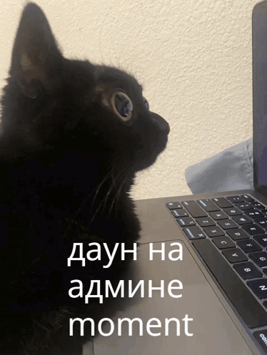 A black cat with wide eyes stares intently at a laptop screen, embodying the 'admin moment' meme.