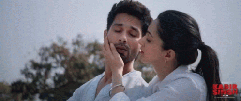 Shahid Kapoor and Kiara Advani share a tender, romantic moment from the film Kabir Singh.