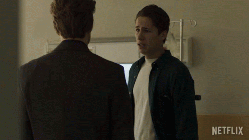 Alex Gallego receives a comforting hug during an emotional moment, likely from Luis Miguel or Juanpa Zurita, in a hospital setting.