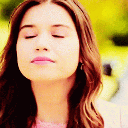 Afra Saraçoğlu, with her eyes closed, slowly opens them, revealing her captivating gaze.