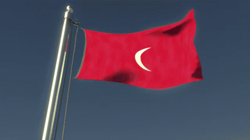 A vibrant red Turkish flag with a white crescent moon and star waves proudly on a flagpole.
