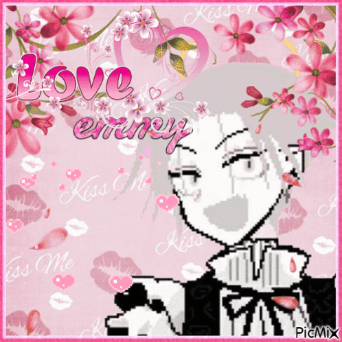 Agape Marutoku, a pixel art character, featured in a pink floral frame with 'love emmy' text.